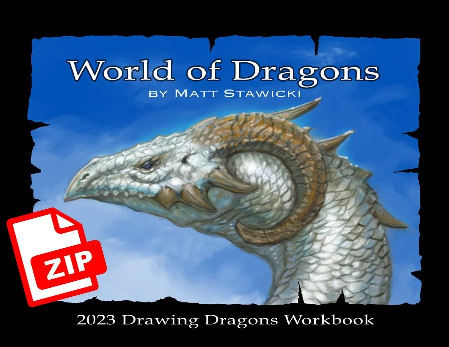 The 2023 Drawing 31 Dragons WORKBOOK is available as a physical printed copy or as a digital download.